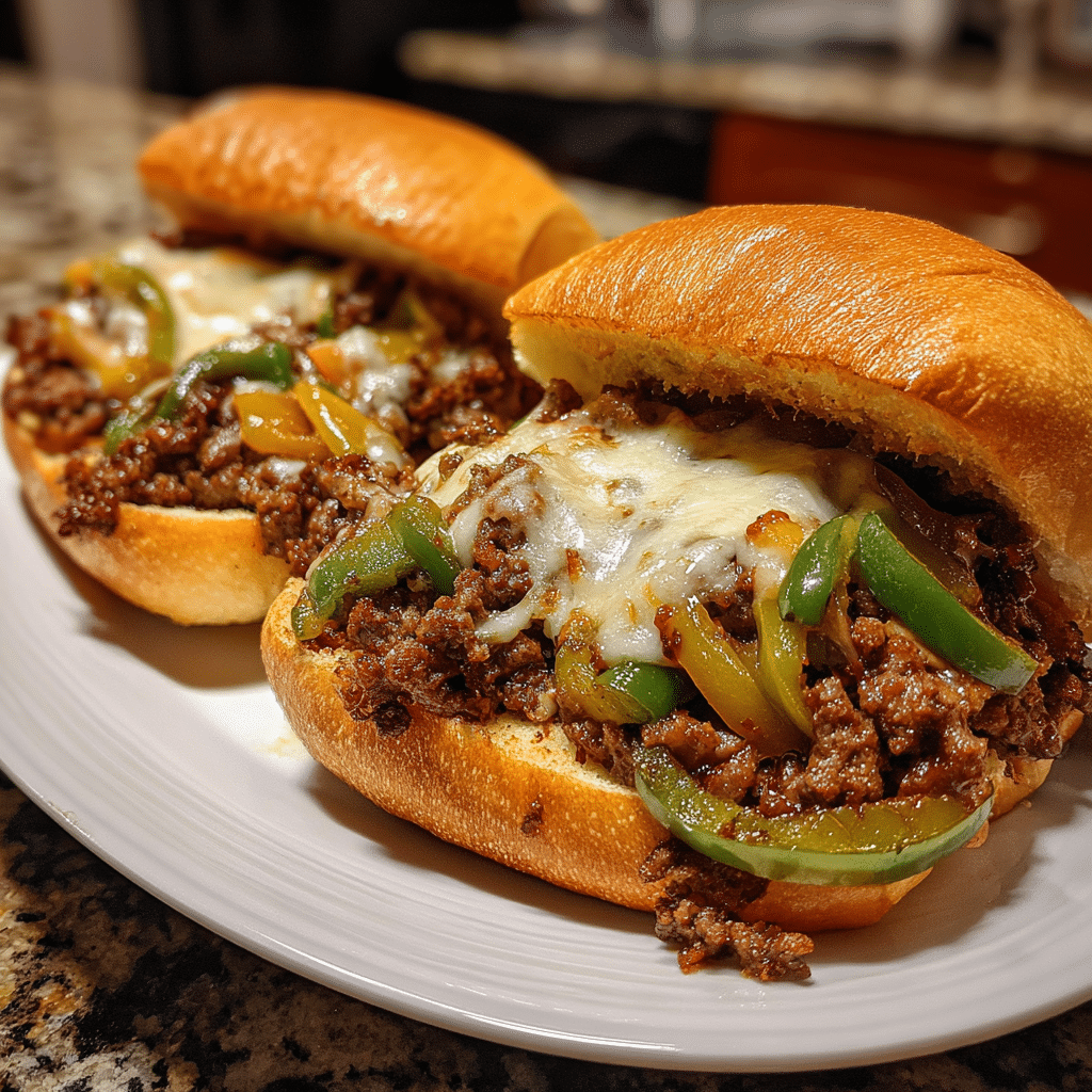 Philly Cheesesteak Sloppy Joes fuse juicy ground beef with caramelized onions, green peppers, and mushrooms in gooey provolone cheese sauce. Served on toasted brioche buns, this 30-minute mashup delivers cheesesteak flavor with sloppy joe ease.