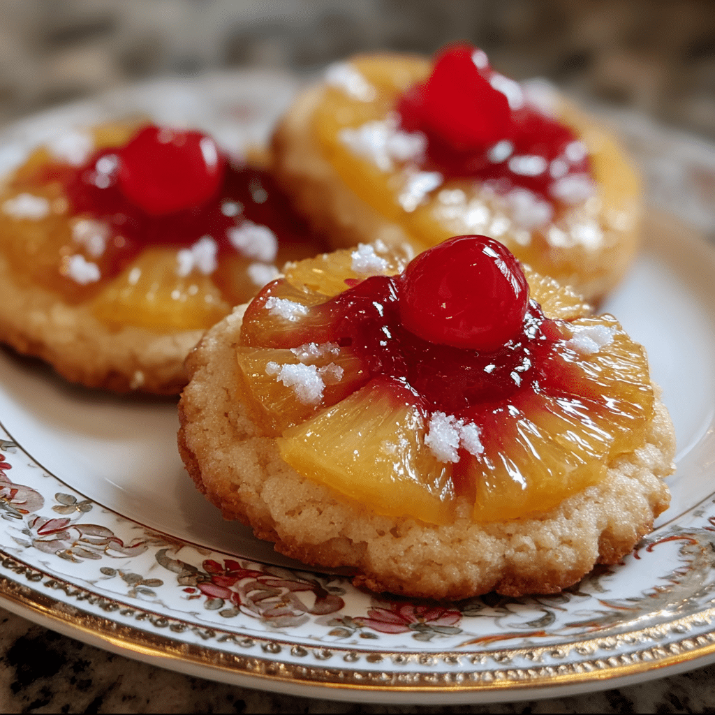 Pineapple Upside Down Sugar Cookies bake soft sugar cookie dough over caramelized pineapple rings and maraschino cherries in muffin tins, then flipped for perfect handheld cake presentation. Iconic tropical dessert reimagined as chewy cookie perfection.