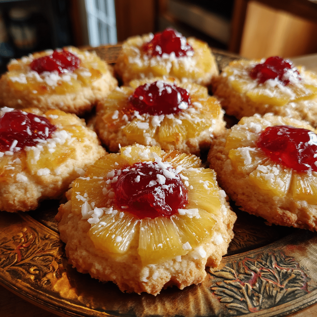 Pineapple Upside Down Sugar Cookies deliver cake nostalgia in portable bliss caramelized, chewy tropical perfection.