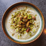 Creamy Pistachio Coconut Oatmeal blending rich coconut milk, nutty pistachios, rolled oats, and warm spices. Protein-packed breakfast with tropical pistachio flavor and perfect texture.