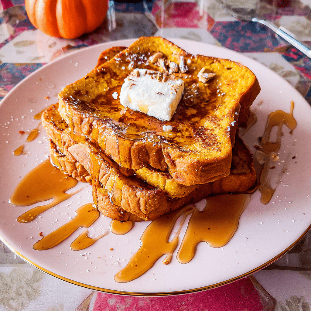 Fluffy, spiced pumpkin French toast with warm fall flavors and a golden-brown exterior