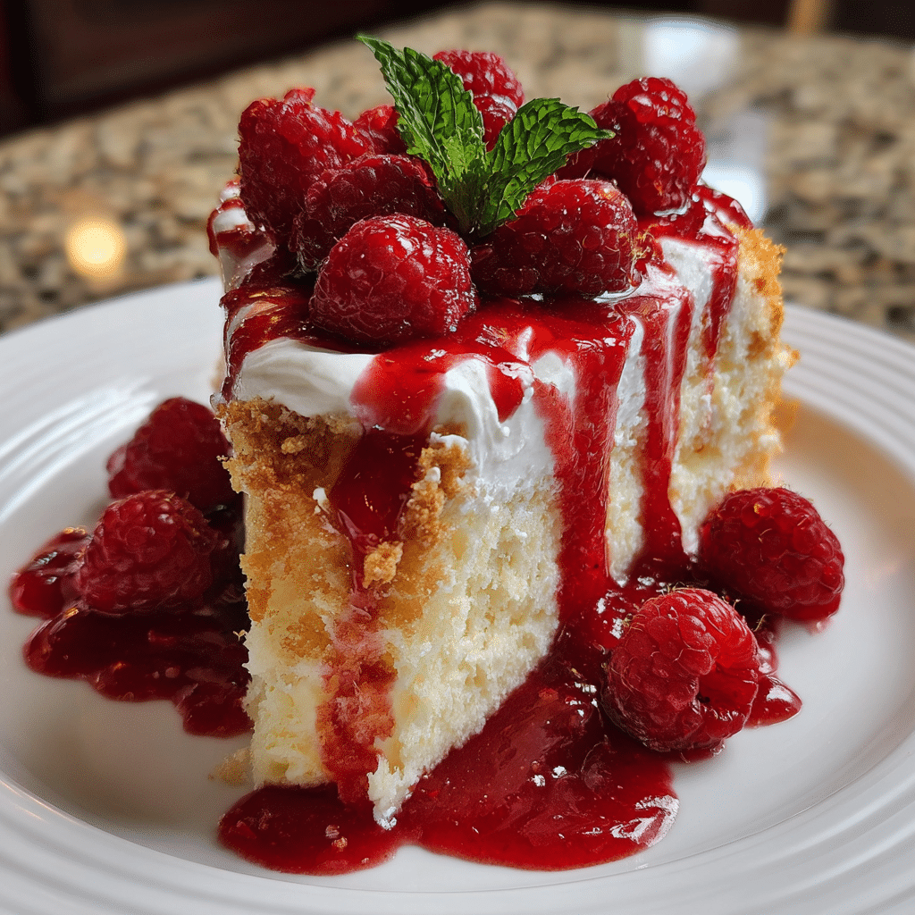 Raspberry Angel Food Cake is a light, airy dessert that combines fluffy angel food cake with fresh, juicy raspberries and a delicate whipped topping.