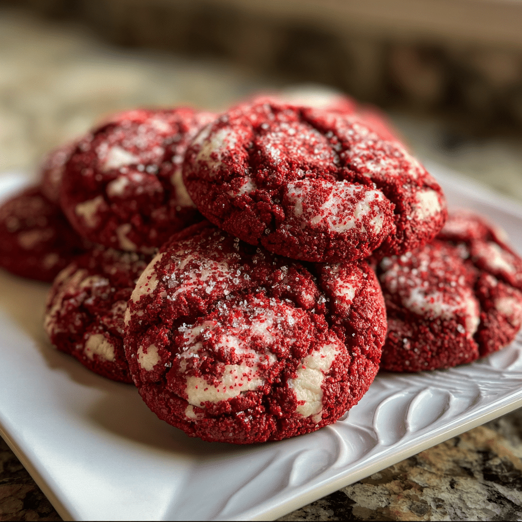 Soft and chewy red velvet cookies with a rich cocoa flavor and vibrant red color bakery-style cookies that are perfect for holidays, Valentine’s Day, or anytime a classic red velvet treat is desired.