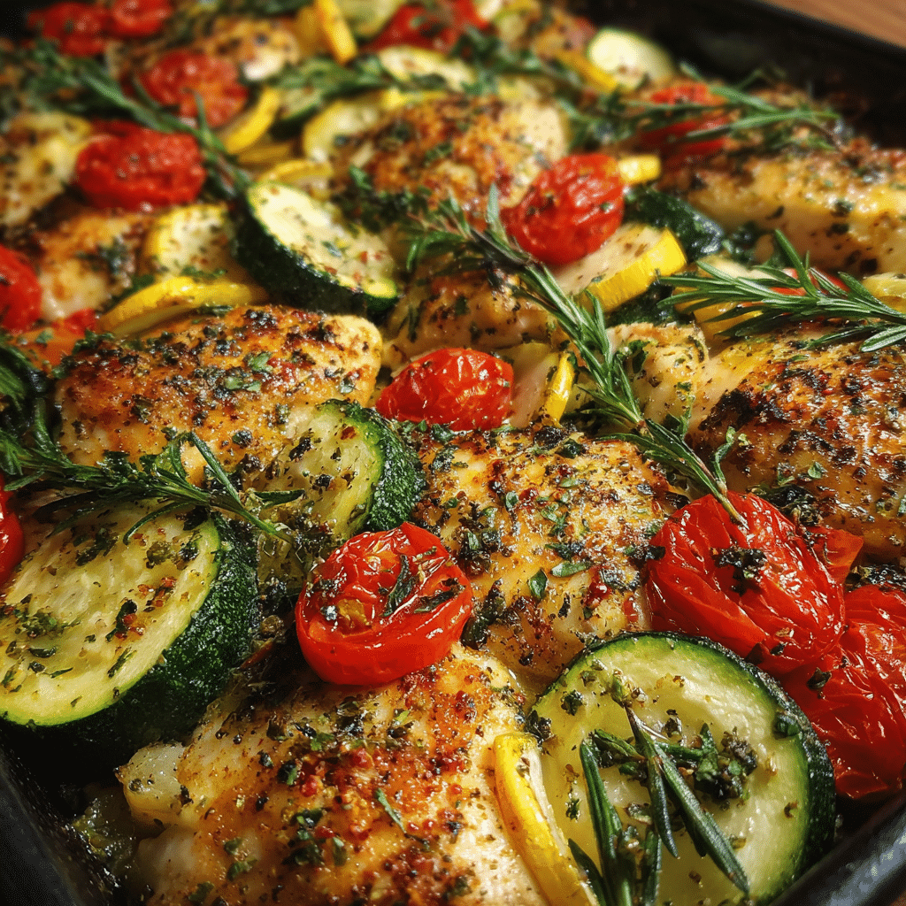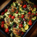 A fresh and flavorful sheet pan Mediterranean chicken with tender zucchini, cherry tomatoes, and savory herbs an easy, healthy dinner packed with bright, vibrant flavors.