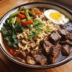 Tender beef simmered to perfection with savory broth and fresh vegetables, served over chewy ramen noodles. A comforting slow cooker meal that’s perfect any day of the week.