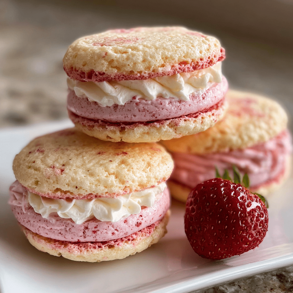 Ultra-soft strawberry cake mix sandwich cookies with a fluffy vanilla buttercream filling easy, colorful, and perfectly sweet, making them an ideal Valentine’s Day or party dessert.