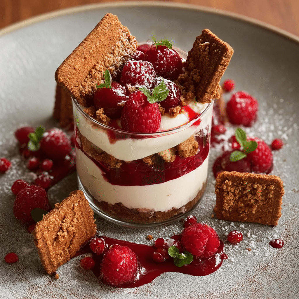 Spekulatius Dessert with Raspberries Christmas-hugs fruit layered perfection.