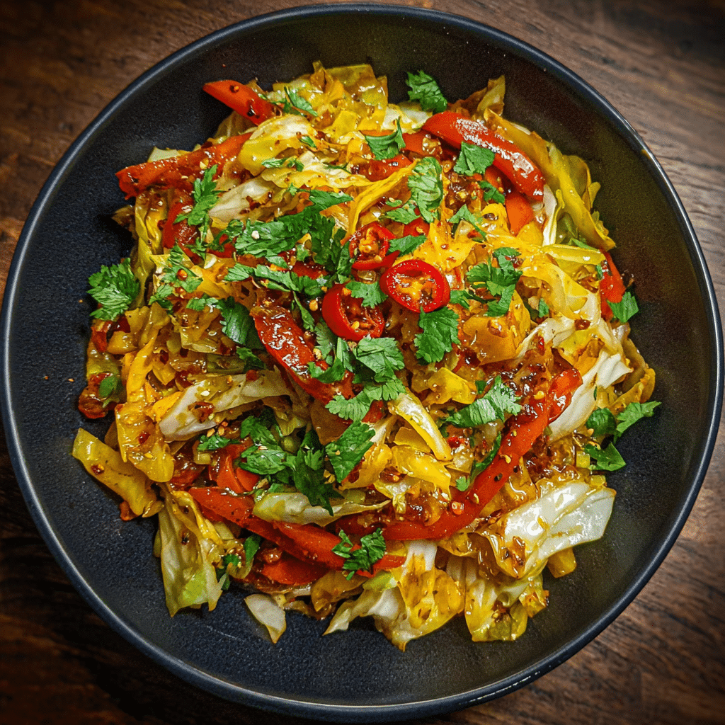 PrintSpicy Mango Chili Cabbage Stir Fry Recipe