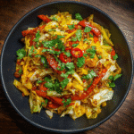 Spicy Mango Chili Cabbage Stir Fry combines sweet ripe mango chunks with fiery Thai chilies and crisp cabbage in gingery garlic sauce. 15-minute vegan main dish perfect for summer mango season with perfect sweet-heat balance.