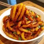 Spicy Potato Noodles are a comforting dish featuring chewy potato noodles tossed in a flavorful chili oil, perfect for a quick meal or side.