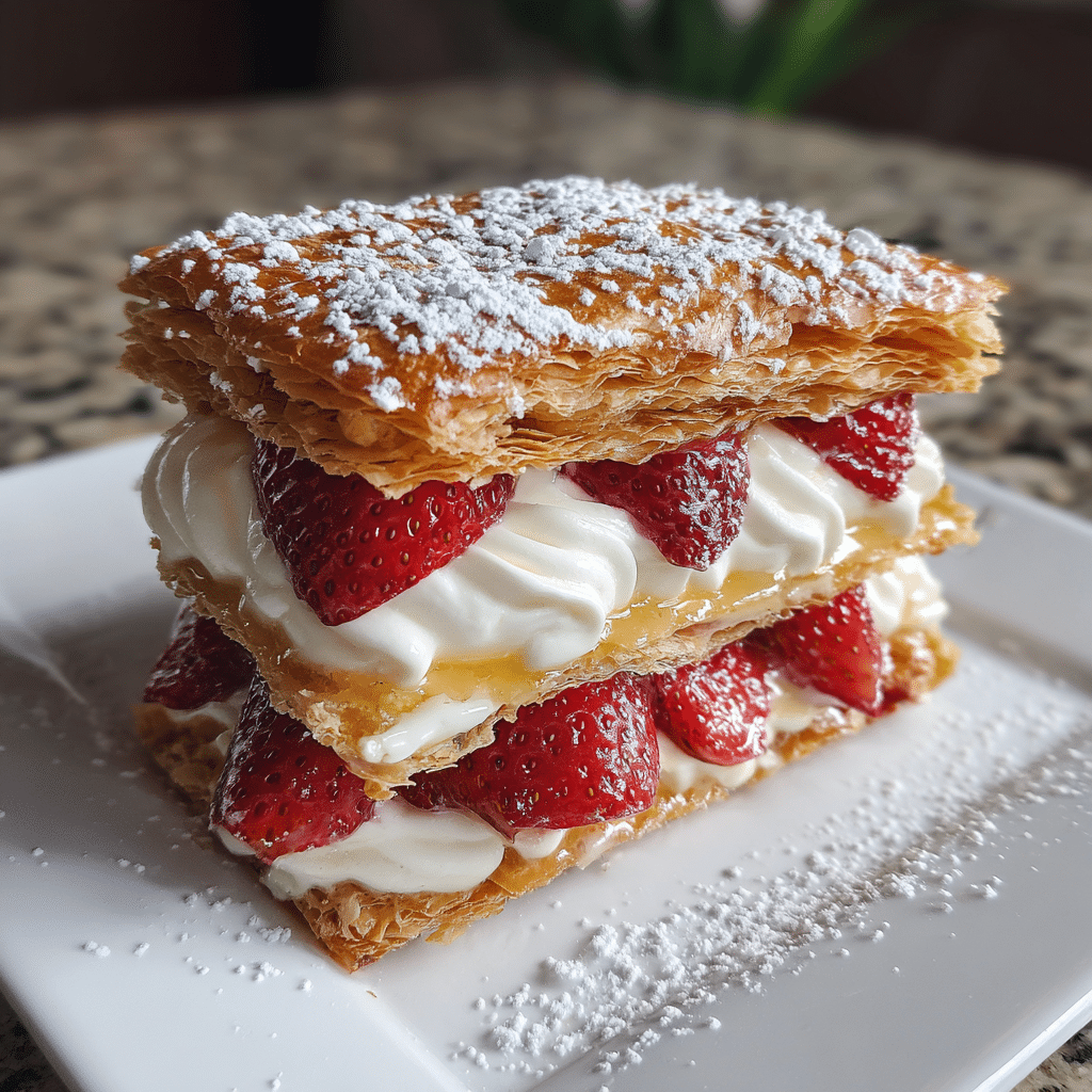 Easy Strawberry Napoleon dazzles with flaky fruit layers elegant simplicity.