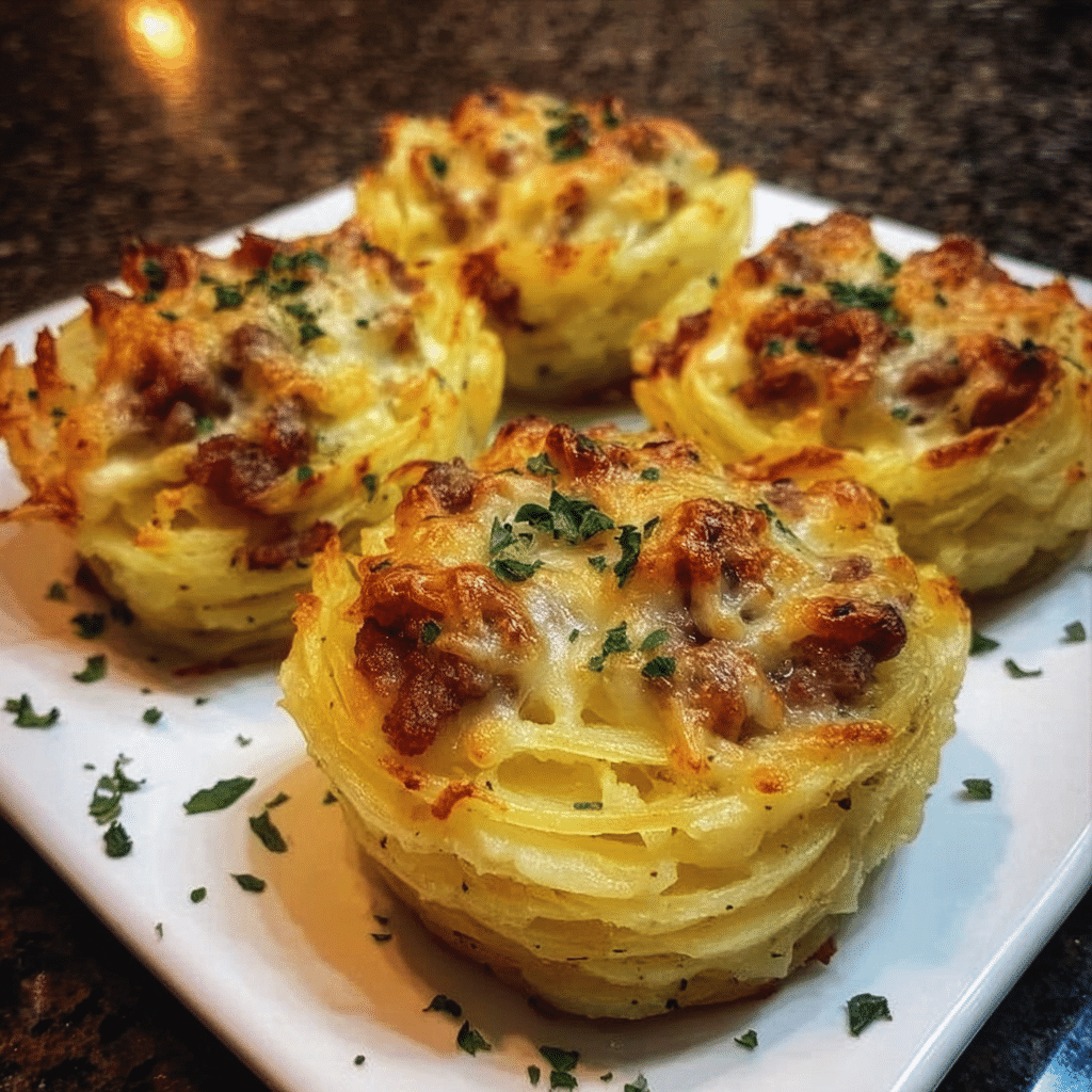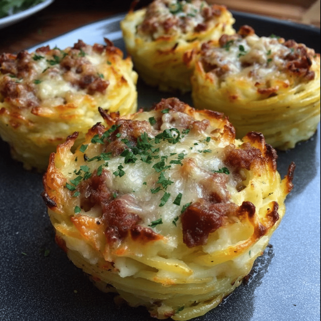 These Stuffed Mashed Potato Nests are creamy mashed potatoes baked into crispy nests and filled with cheesy, savory goodness perfect as an appetizer or comforting side dish.