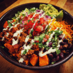 Hi, I’m Sam from dishfoody.com, where comforting classics get a fresh twist. Sweet Potato Taco Bowl layers roasted sweet potato cubes with seasoned ground beef, black beans, corn, avocado, and cilantro lime crema. This 40-minute meal-prep favorite serves 4 with perfect crispy-tender taco vibes.