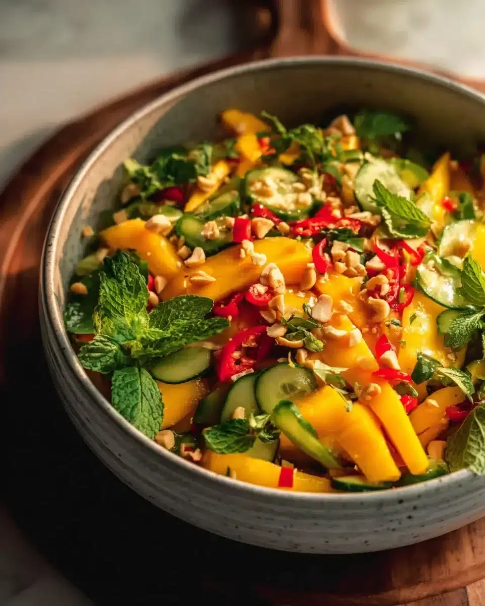 Thai Mango Salad is not just a dish; it’s a celebration of fresh flavors and vibrant colors. This salad is perfect for those who appreciate a balance of sweet, tangy, and spicy tastes. With its key ingredient being ripe mangoes, this recipe is a fantastic way to enjoy healthy eating. Mangoes are not only delicious but also full of vitamins and minerals. This salad works great as a side dish at barbecues or parties, or as a light meal on a warm day. It’s quick to prepare, making it perfect for busy weeknights or impromptu gatherings.