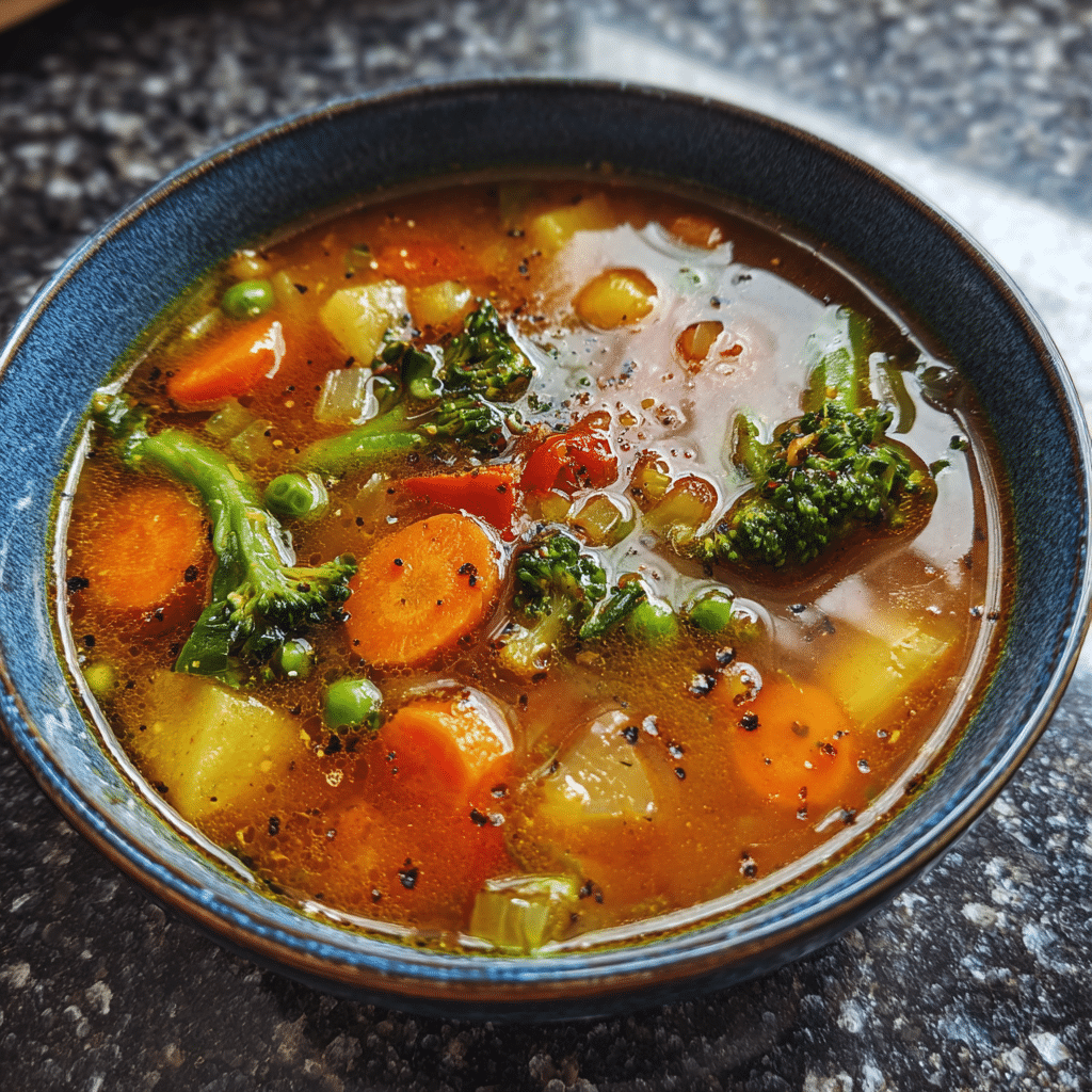 Hearty and healthy Vegetable Soup loaded with fresh seasonal vegetables simmered in a flavorful herb-infused broth. A comforting, vegan, and gluten-free soup perfect for any meal.
