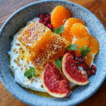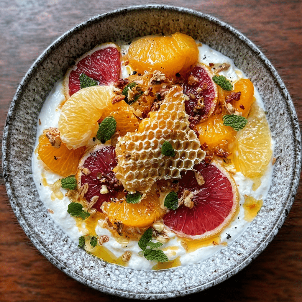 A bright and nourishing winter breakfast bowl made with creamy ricotta, juicy seasonal citrus, crunchy nuts, and a drizzle of golden honeycomb. Light, elegant, and naturally sweet perfect for a cozy yet refreshing start to the day.